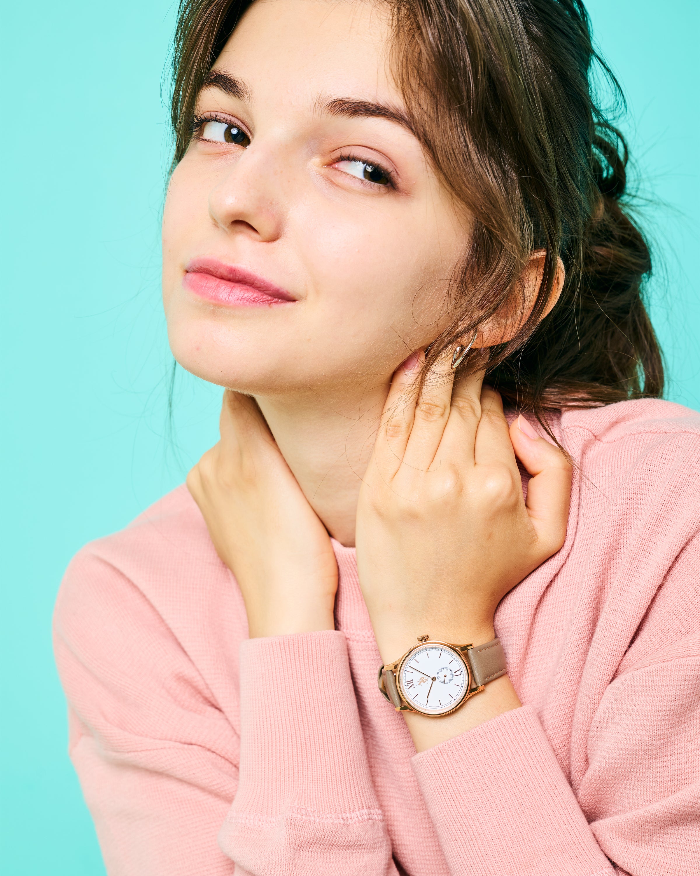 文字盤の中心にブランドロゴを配置したシンプルな装いで、洗練された印象を与える腕時計『classico(クラシコ)』。6時位置にはスモールセコンドを設置されています。