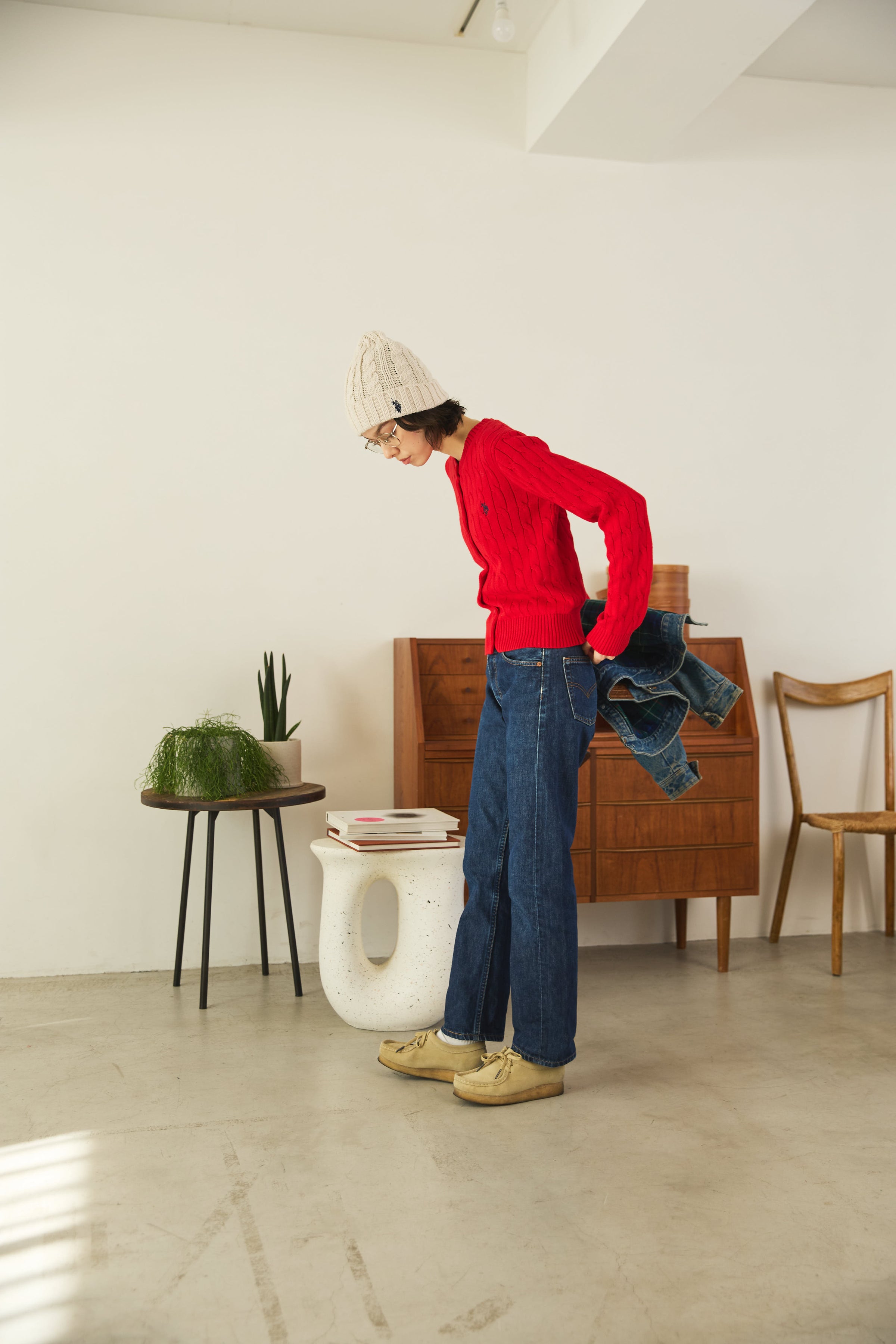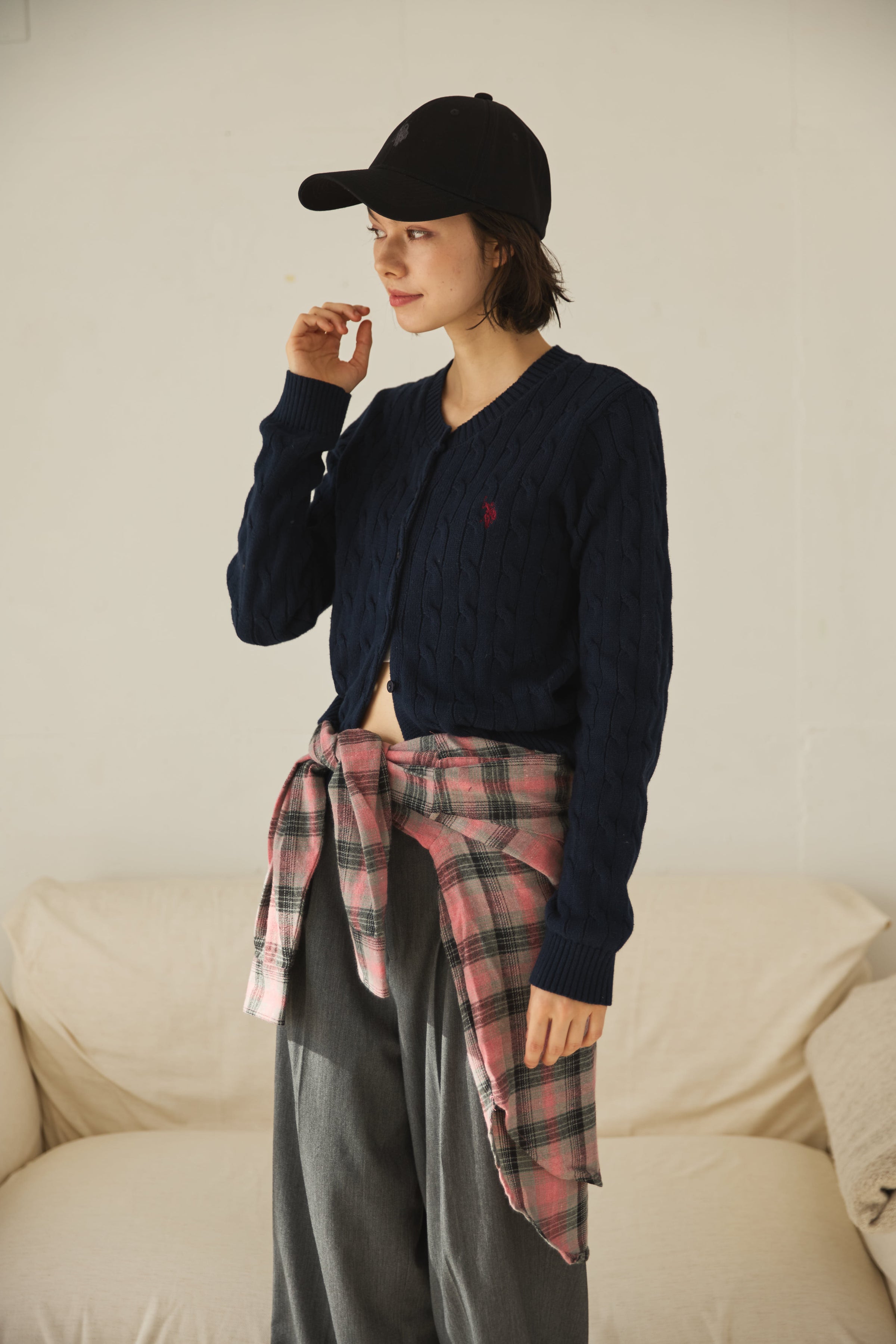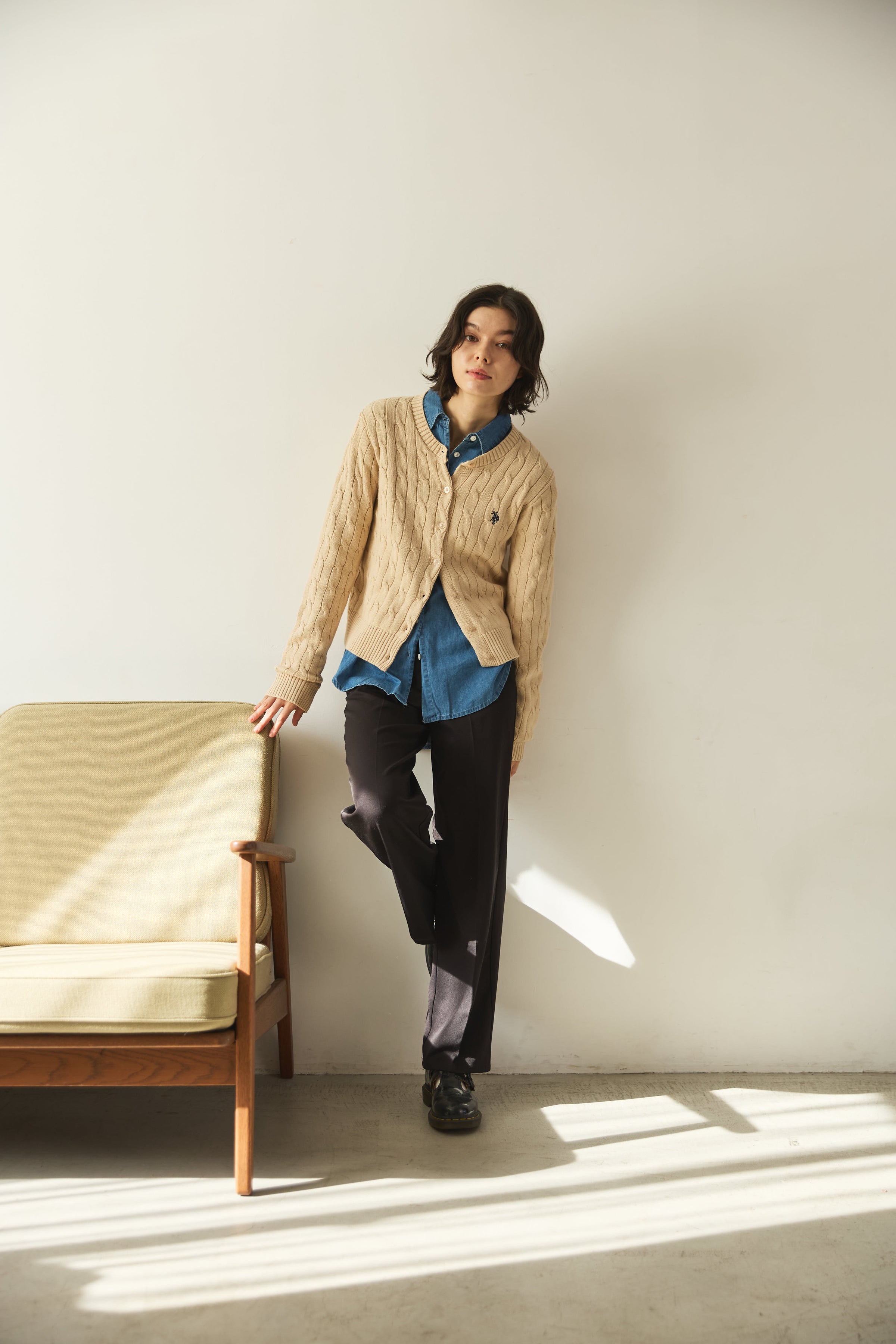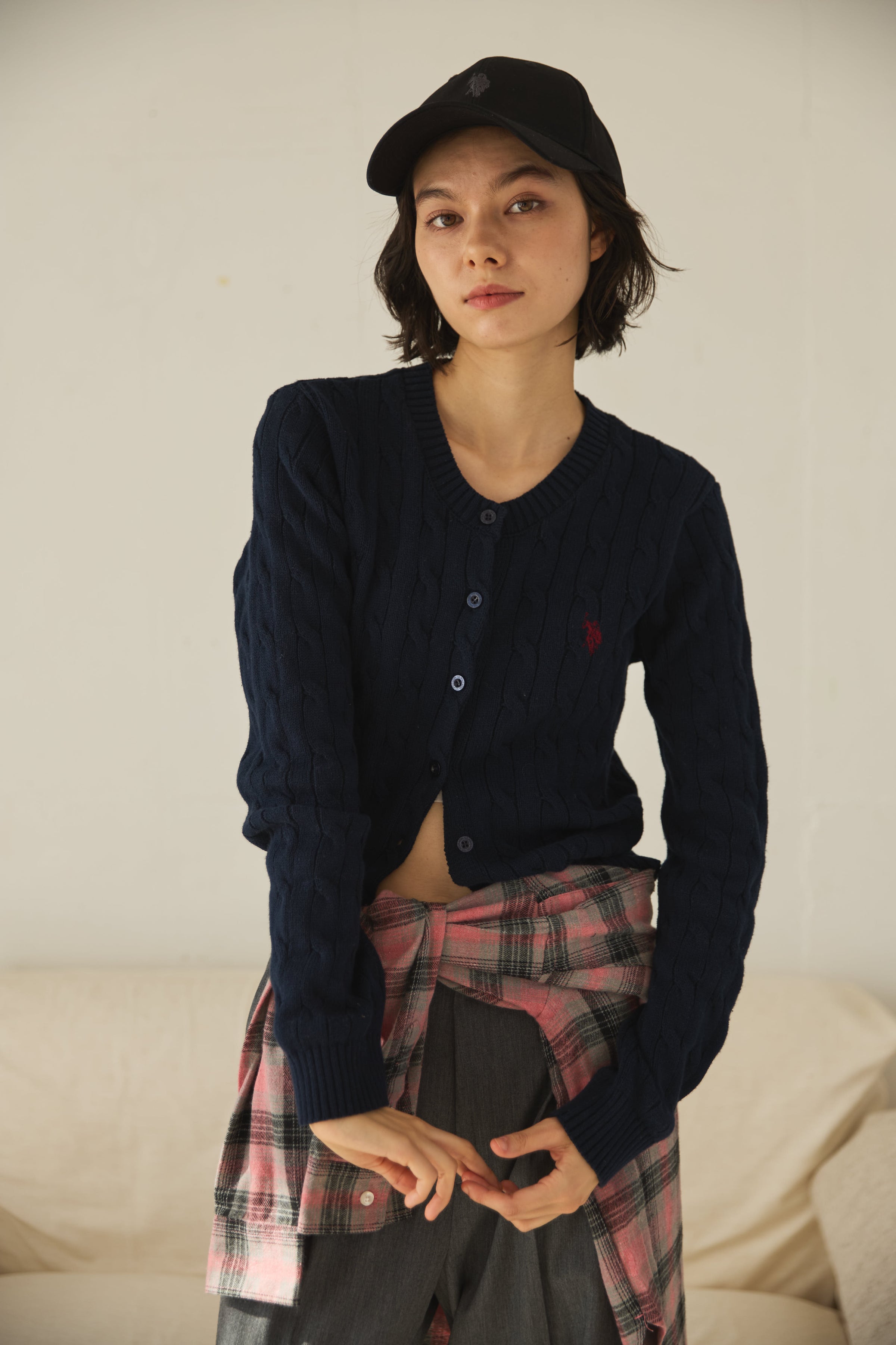 cable knit cardigan ケーブルニットカーディガン ダブルホースマン刺繍 PLL53468