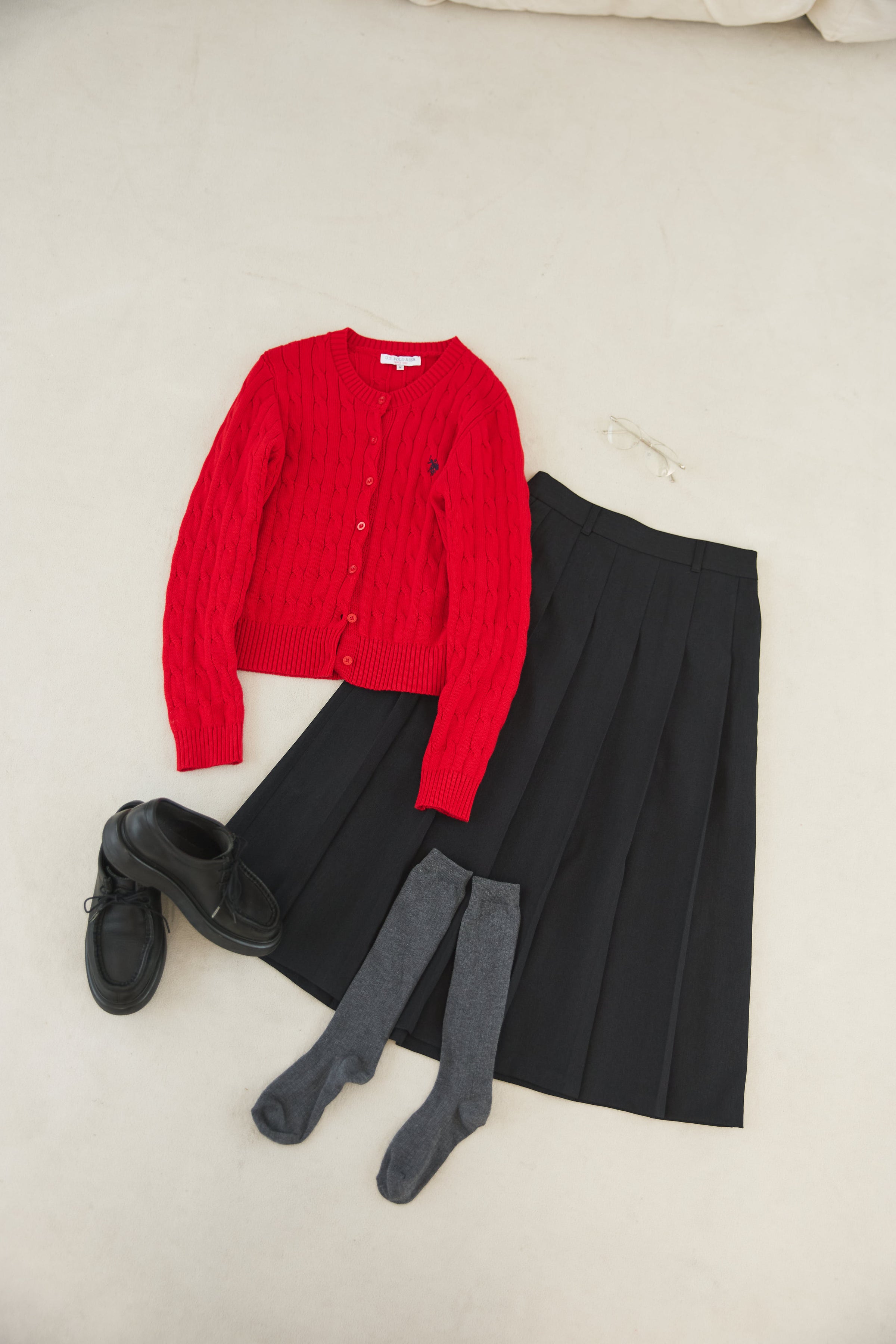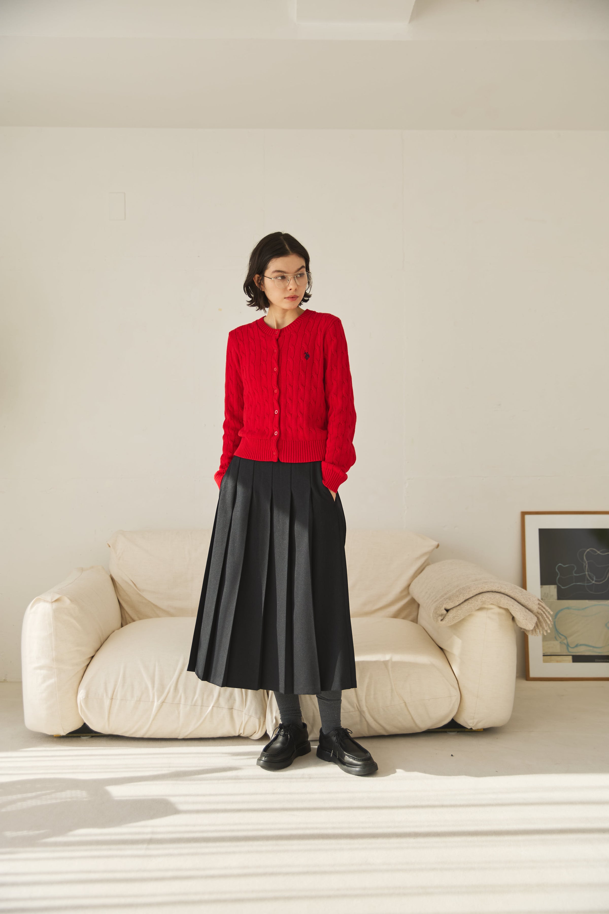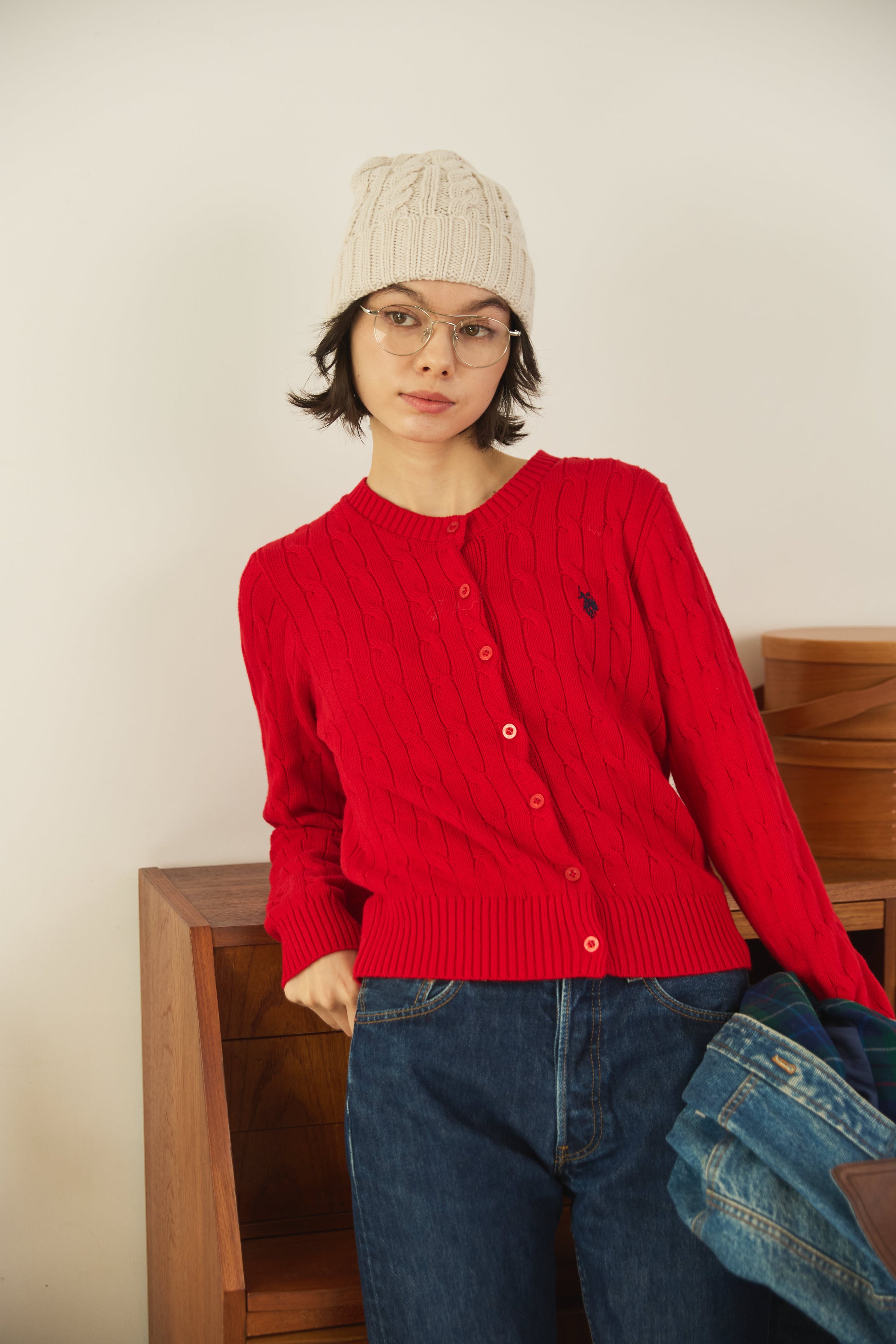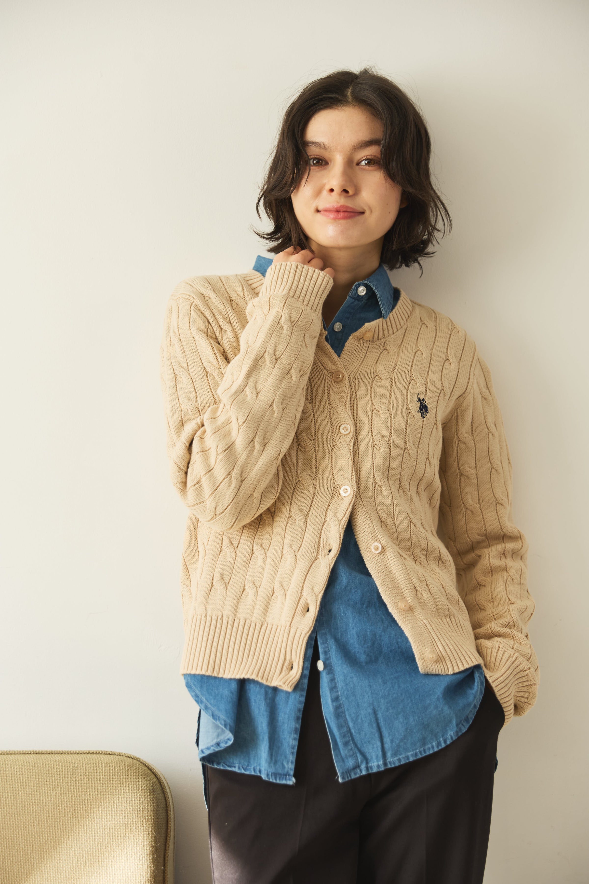 立体感のあるケーブル編みが目を惹く、綿100%のニットカーディガン。
