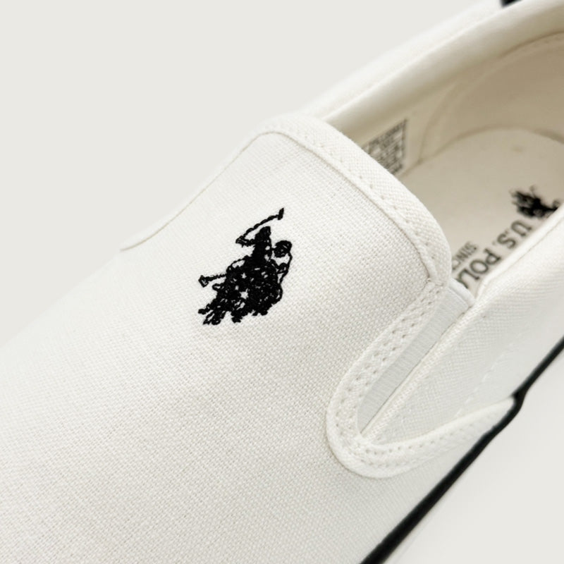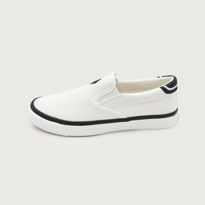 脱ぎ履きのしやすさが魅力のスリッポンデザイン。フィット感があり、快適な履き心地を実現します。シンプルなキャンバス地にブランド刺繍が映え、