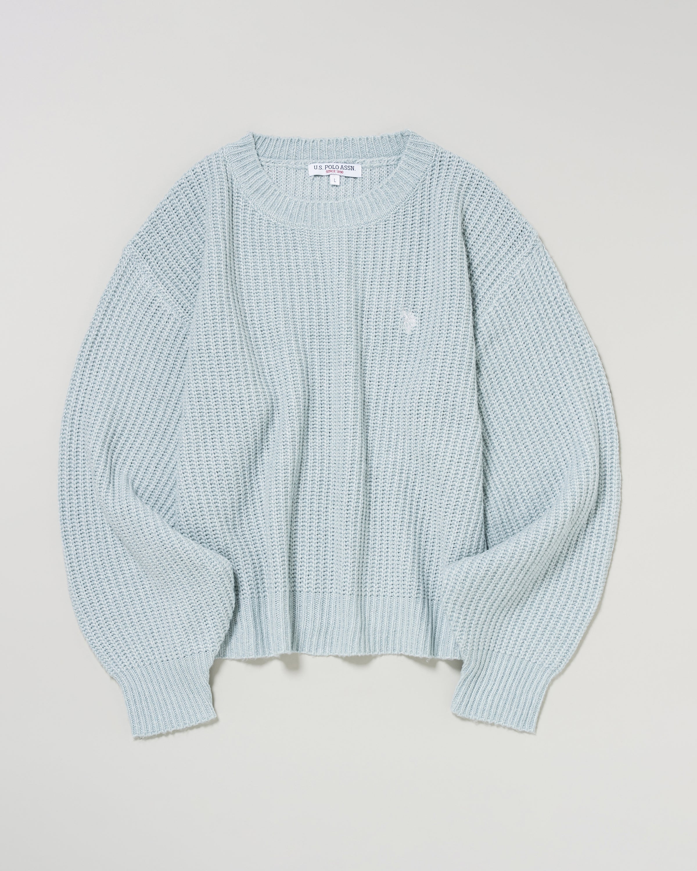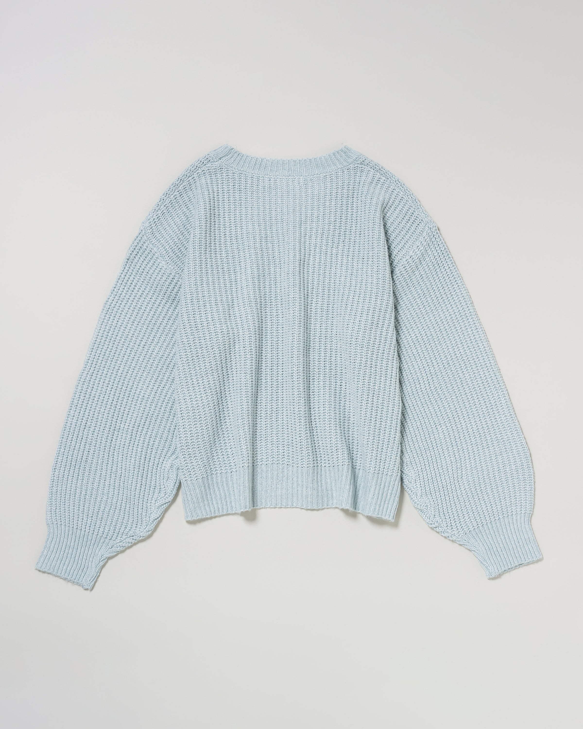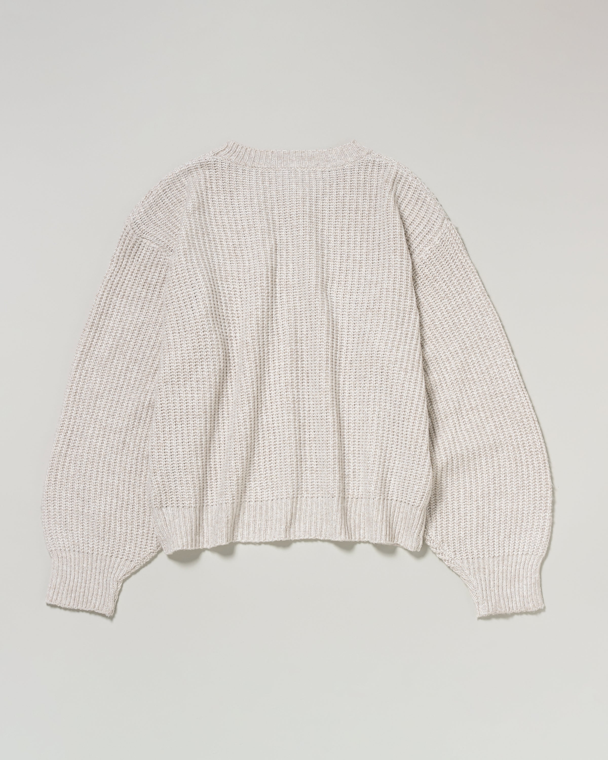 立体感のある編みが、シンプルながらも奥行きのあるデザインを演出。ボリュームのある袖や、ほどよくルーズなシルエットが今っぽい抜け感を与え、1枚で着映えるアイテムです。