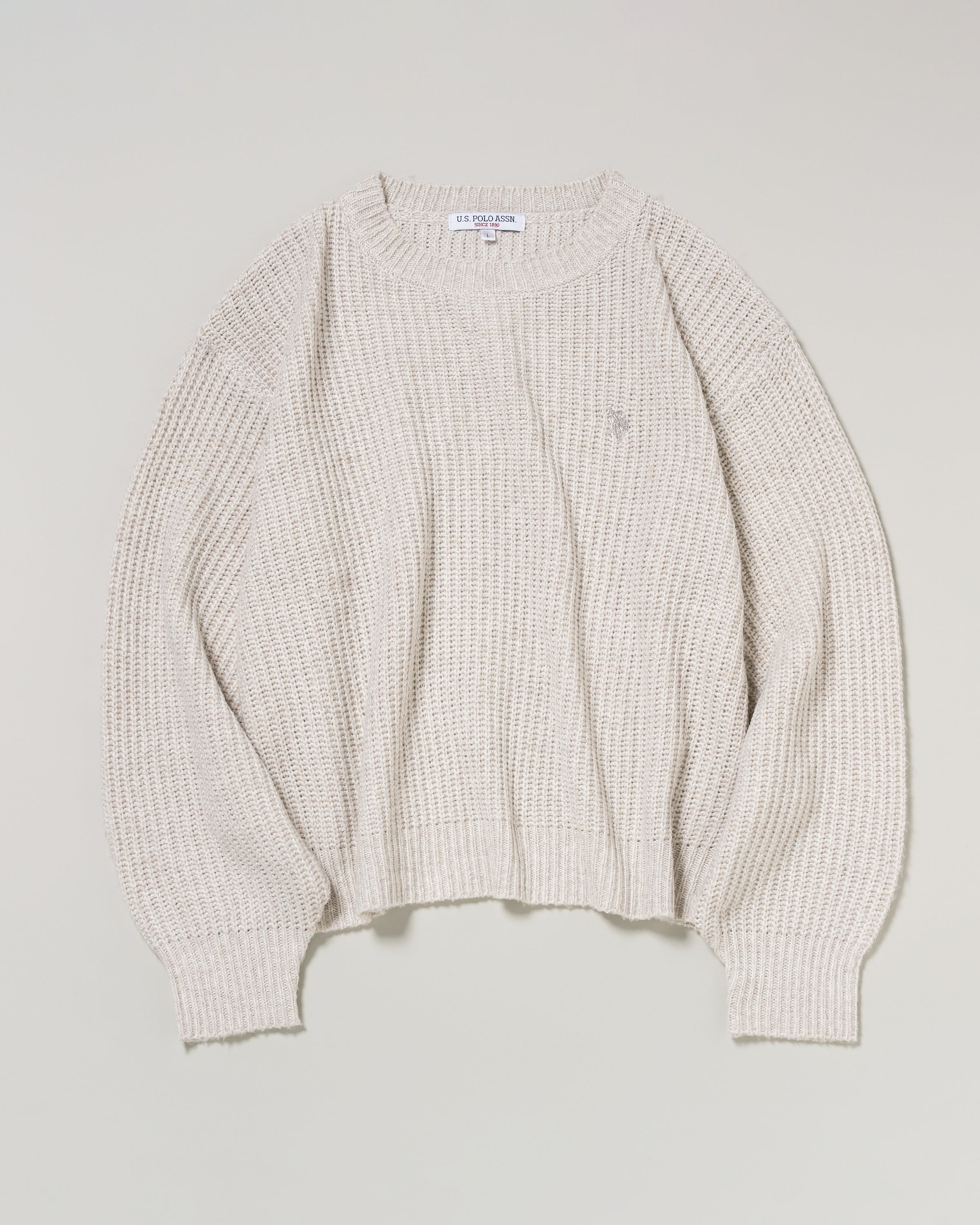 lame knit pullover ラメクルーニット ダブルホースマン刺繍 PLL53403