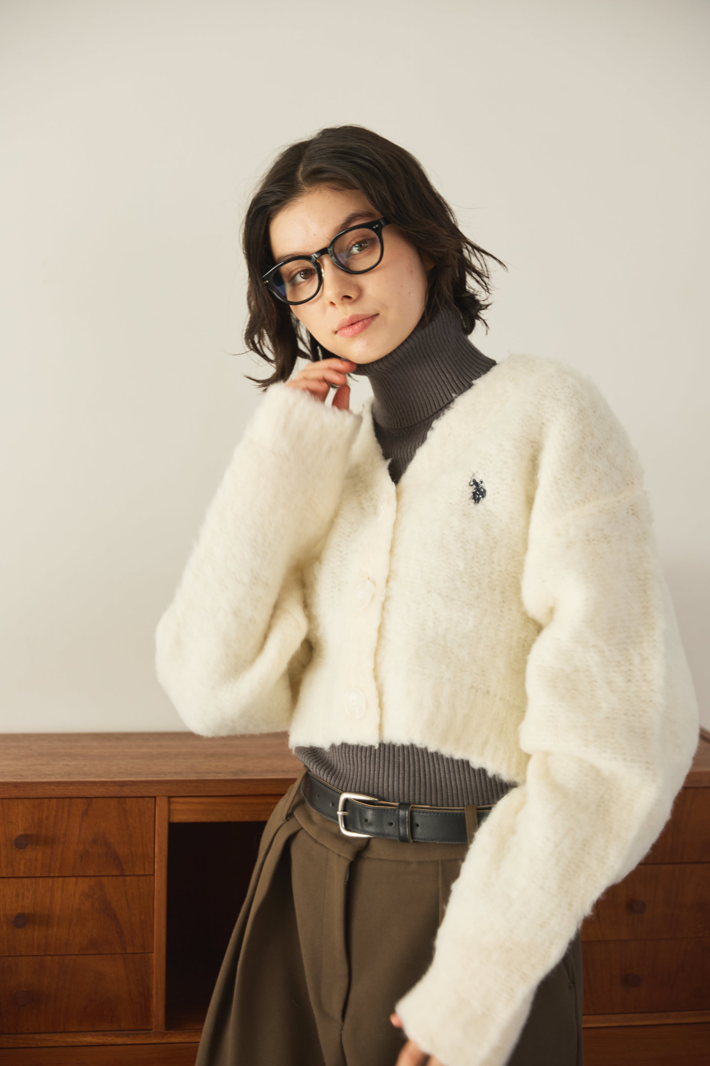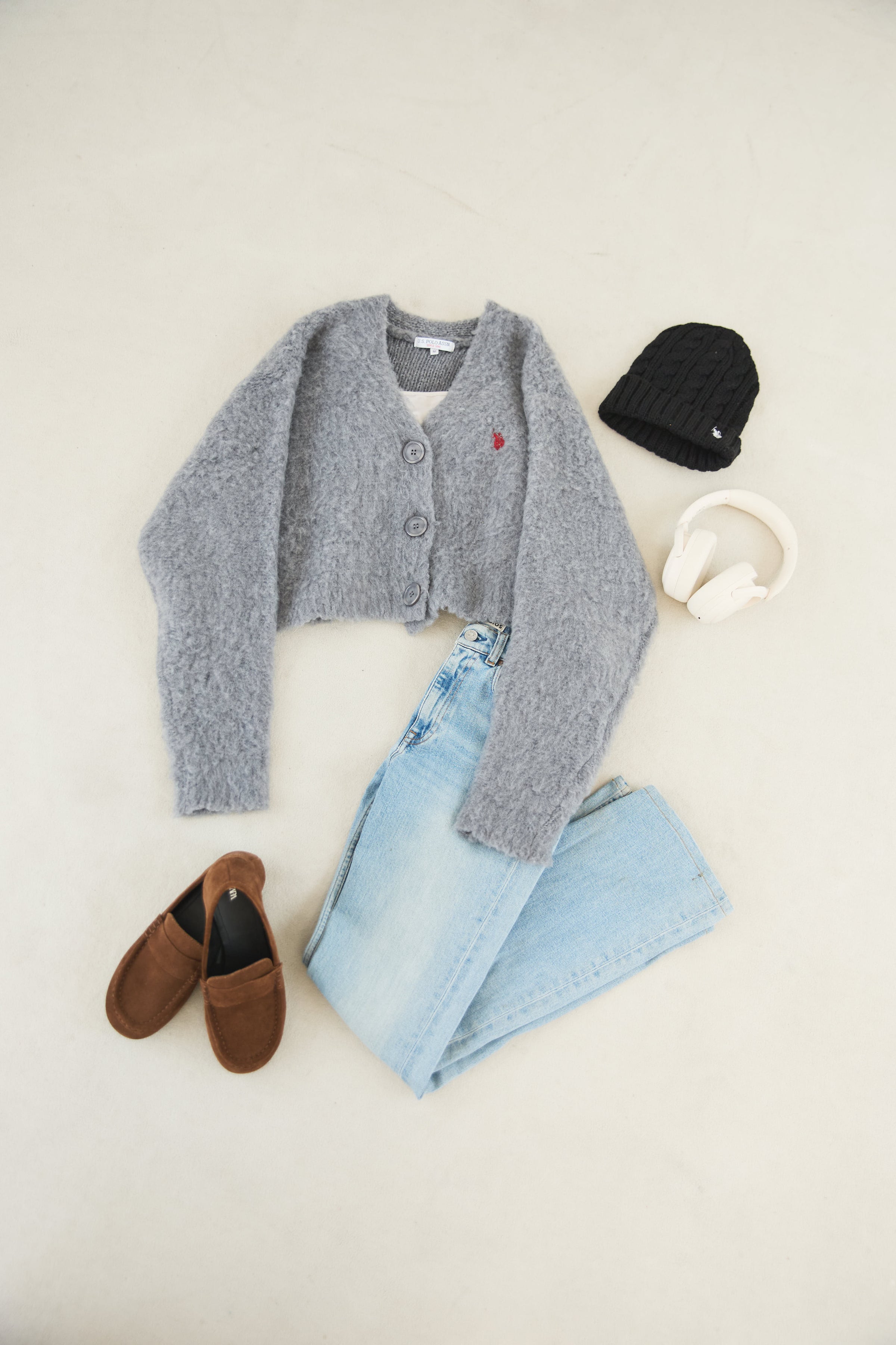 ふんわりとしたシャギー素材が魅力のトレンド感あふれるカーディガン