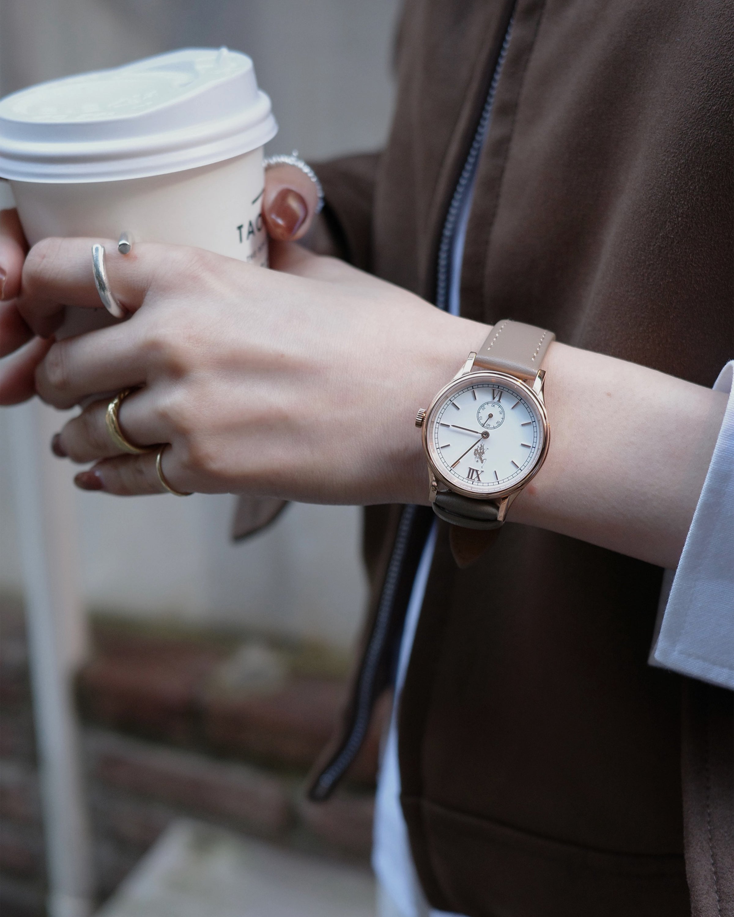 文字盤の中心にブランドロゴを配置したシンプルな装いで、洗練された印象を与える腕時計『classico(クラシコ)』。6時位置にはスモールセコンドを設置されています。